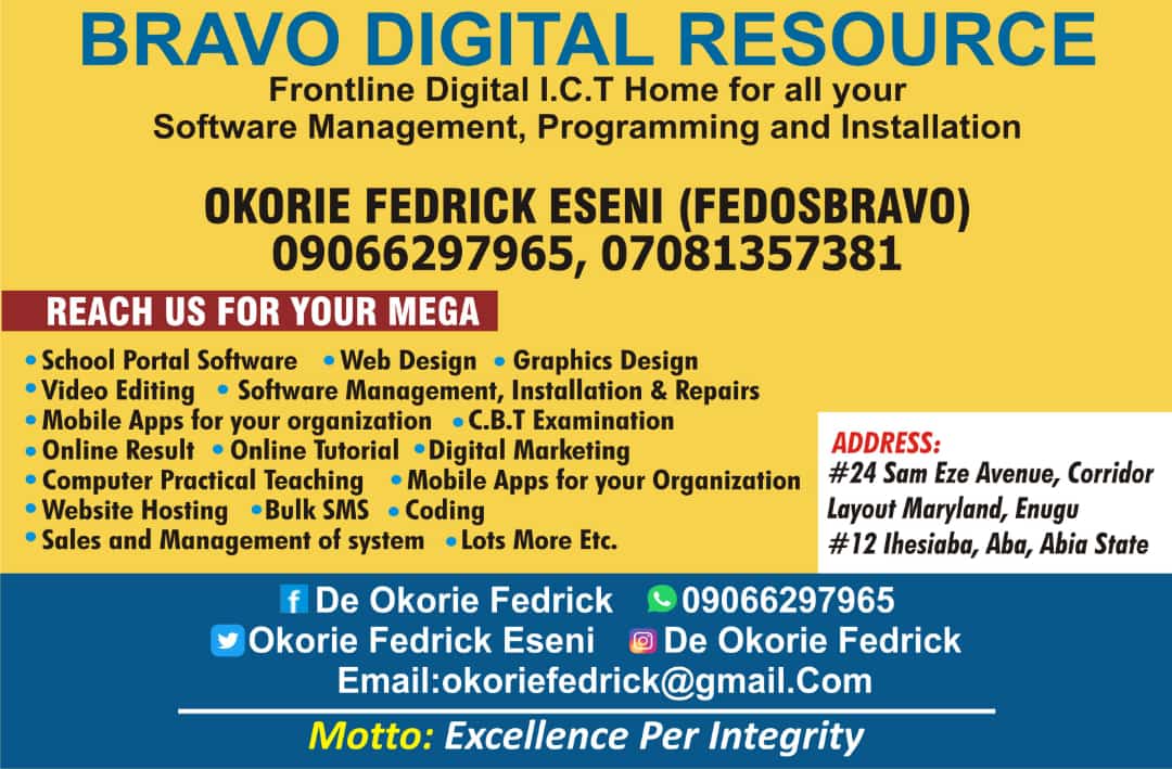 “Bravo Digital Resource has given us the revolution we want, thanks Bravo.. More Grace”